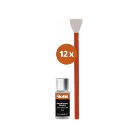 Kit professionale per la pulizia del sensore APSC, composto da 12 tamponi confezionati sottovuoto e un flacone di liquido detergente da 15ml, ideale per una pulizia efficace e sicura.